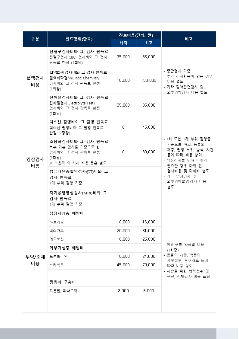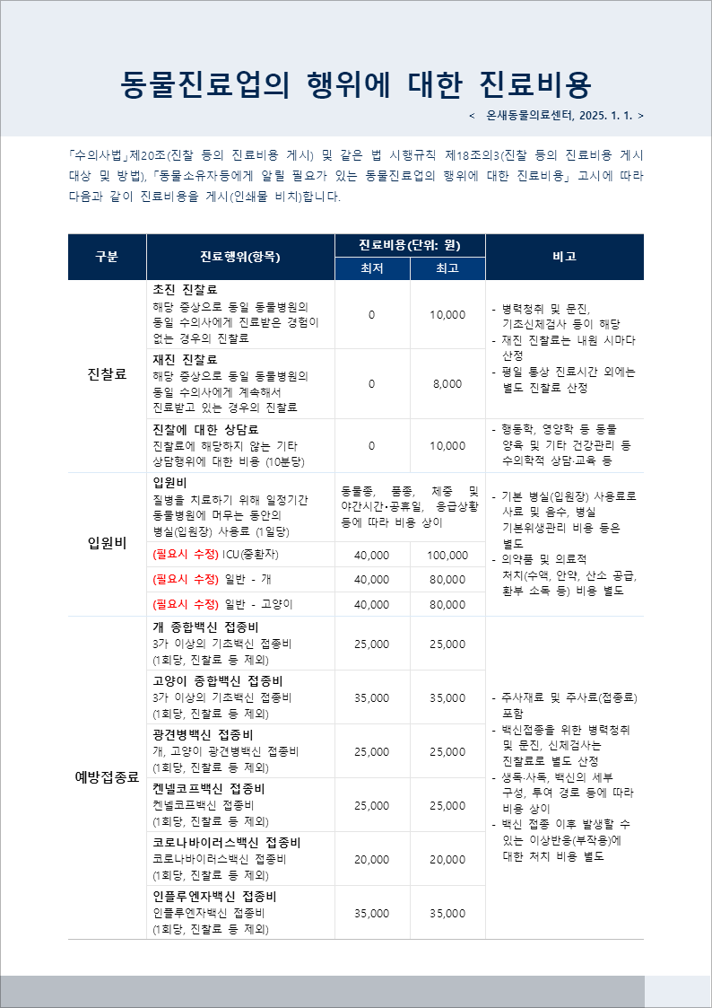 온새동물의료센터 진료비 안내